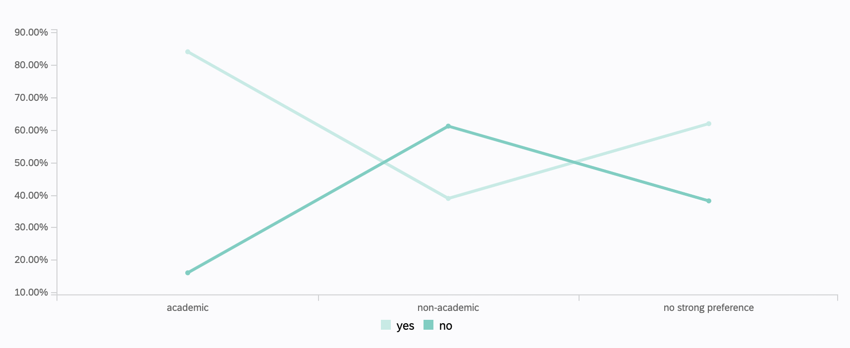 Subsequent questions depended on the participant's answer to the first question. For instance, those who selected "academic" were asked: