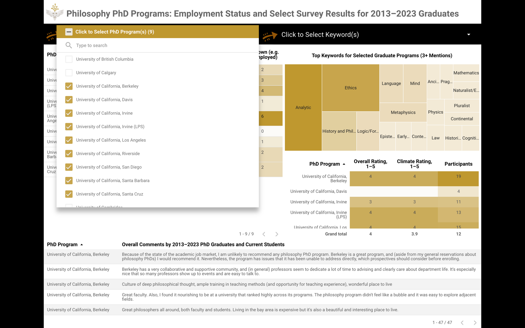 - a PhD program filter, which can be used to examine a subset of PhD programs